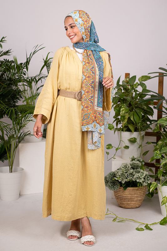 لكن ليس هذا كل شيء! ارتدي زوجك المفضل من الصنادل المريحة، وستكوني جاهزة لغزو العالم. تخيلي أنك تتجولين في الشوارع المشمسة، وفستانك الطويل الذي يكتسح الأرض برشاقة، وحجابك يضيف لمسة من السحر. وخمني ماذا؟ هذه المجموعة ليست فقط للمدينة – إنها تذكرتك لمغامرة شاطئية!