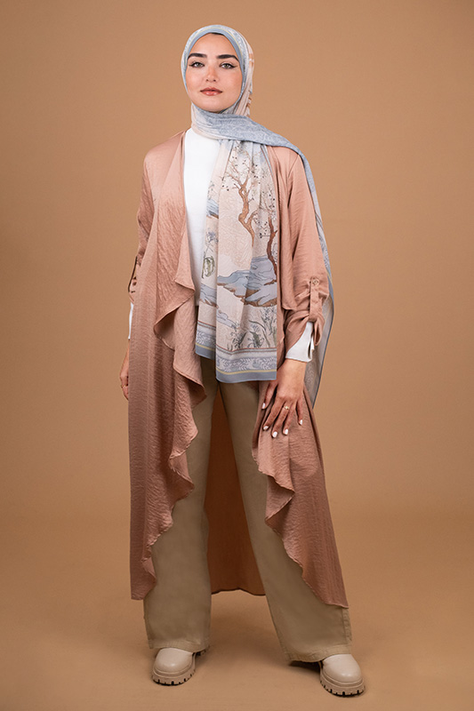 استعدي لغزو الصيف بزي مثالي من الأناقة والتواضع والراحة! تخيلي أنك ترتدين كارديجان طويل وانسيابي يشبه عناقاً ناعماً من الموسم نفسه. وخمني ماذا؟ يمكنك تنسيقه مع بنطال عريض يسمح لبشرتك بالتنفس وتألق إحساسك بالموضة.