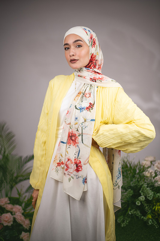 للحصول على أفضل مظهر، ارتدي حجاباً مطبوعاً يربط كل الألوان معاً، مثل الغرزة الأخيرة في نسيج. فقط تخيلي التجول في الشوارع المضاءة بنور الشمس، وسروالك الواسع يتحرك برشاقة، وسترة طويلة تتمايل بلطف في النسيم. إنه ليس مجرد زي. إنه بيان يقول إنك تحتضنين الصيف بأذرع مفتوحة!