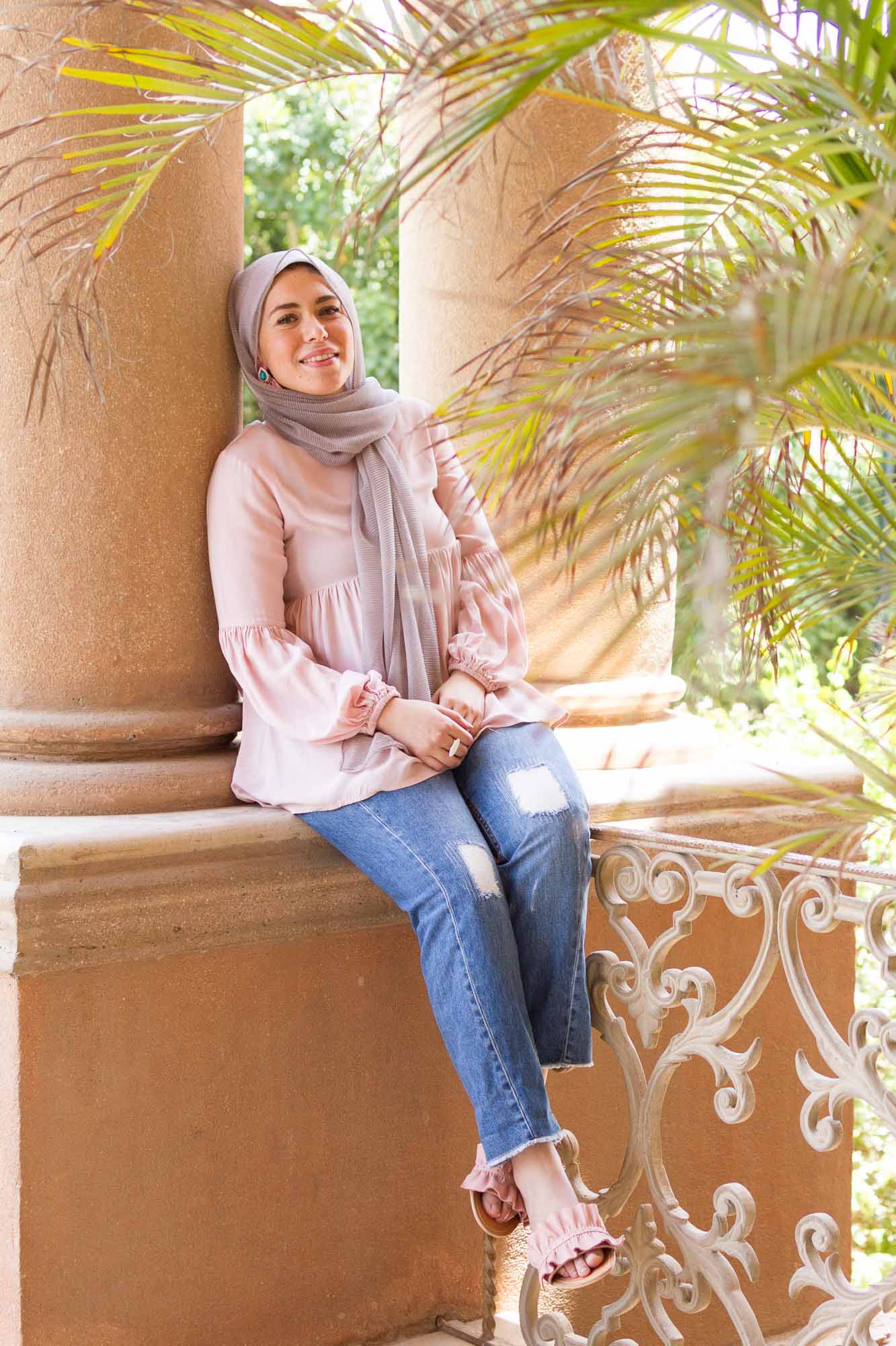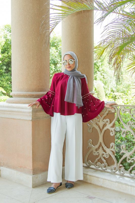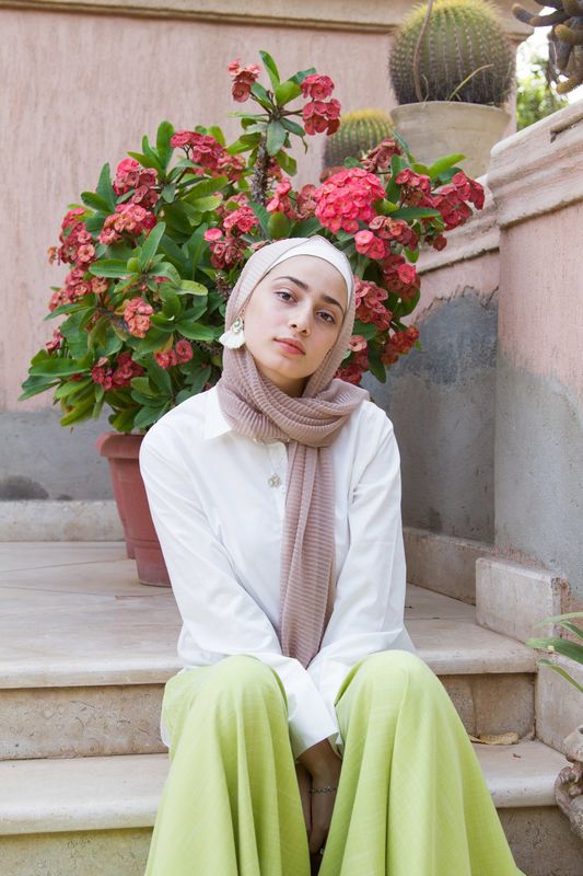 Scarf: EMMA Graphite Shimmer– Pearl Top: Mahari Couture – Pants: Bershka – Pointed Flats: Pellame