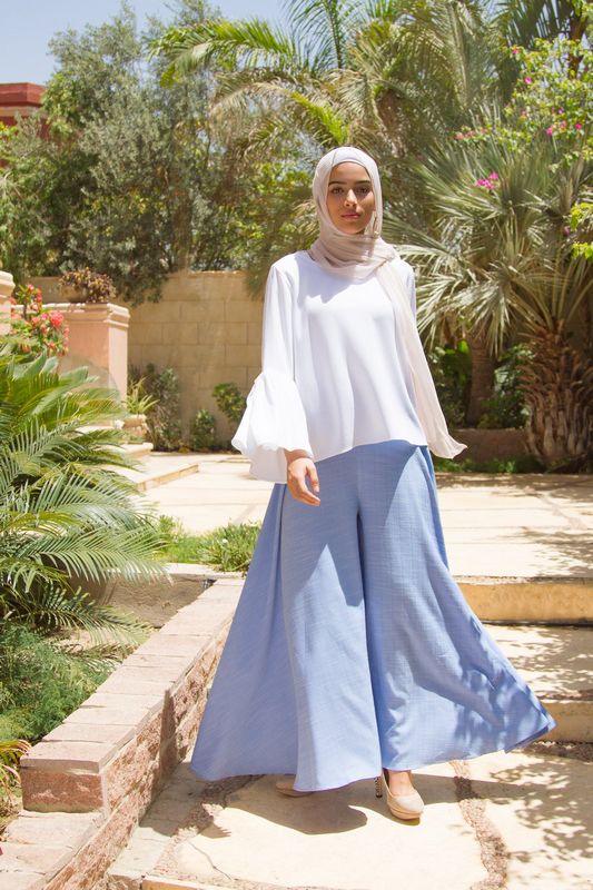 Scarf: EMMA Cafe Shimmer -Tuck in Shirt: Nesaa – Palazzo Pants: Nesaa – Heels: Aldo – Accessories: Pompoms Accessories
