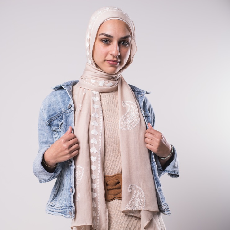 This look is both delicate and graceful. It’s an inspiration for a casual day out with friends. Love Me Nude is a super easy hijab to style because Beige is a basic color, that could be easily worn on a lot of different outfits and in different styles !