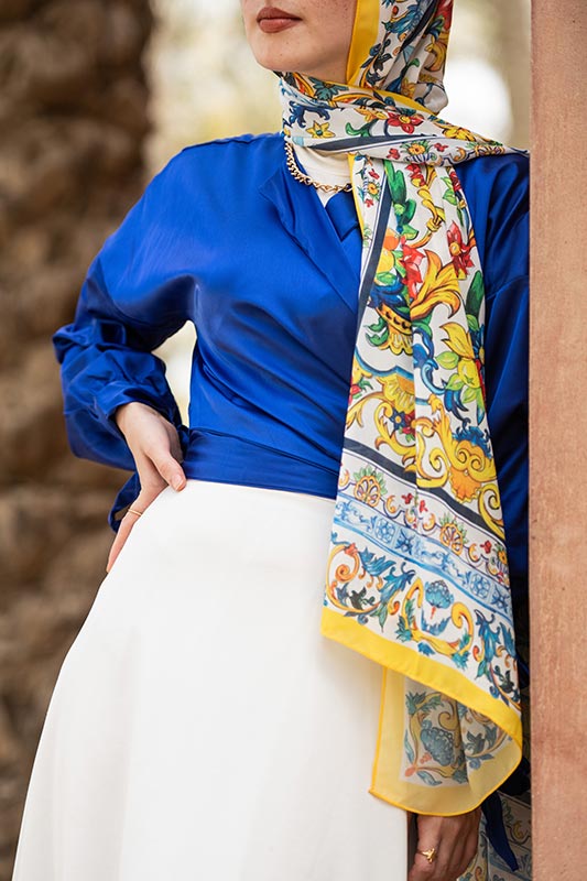 Featured on our one of a kind chiffon fabric that’s so practical and elegant.