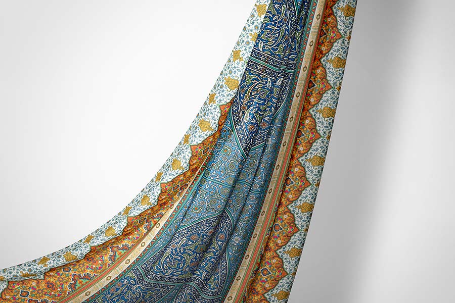 With its Arabic design and bright colours, Zahra will surely steal the eye when you style it with a blue dress. The scarf is riddled with minimal detailing inspired by Arabic authenticity. Its primary colours are blue, white, and tan.