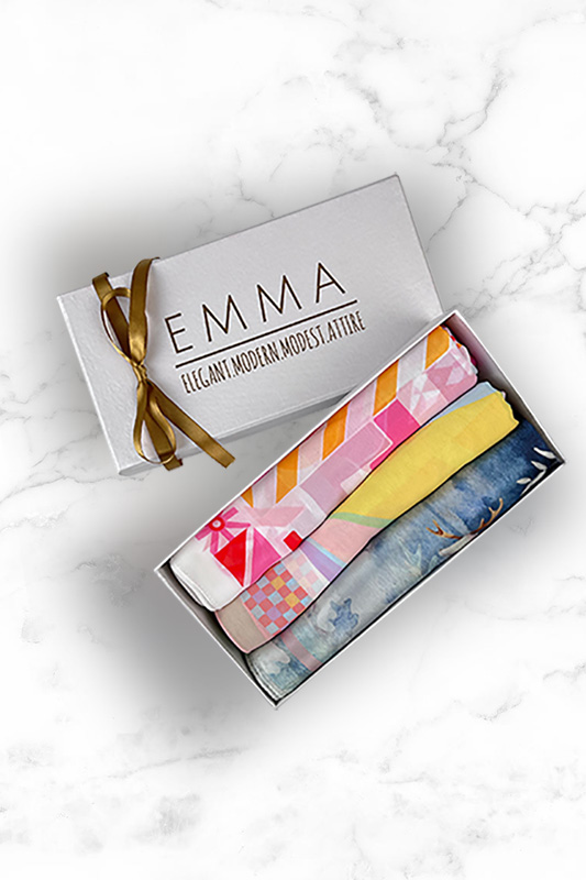 You wear this hijab with a pink or orange dress. It’d be an ideal choice for spring and summer outfits because of its bright shades. You can see how great it looks on a pink dress on the model here.